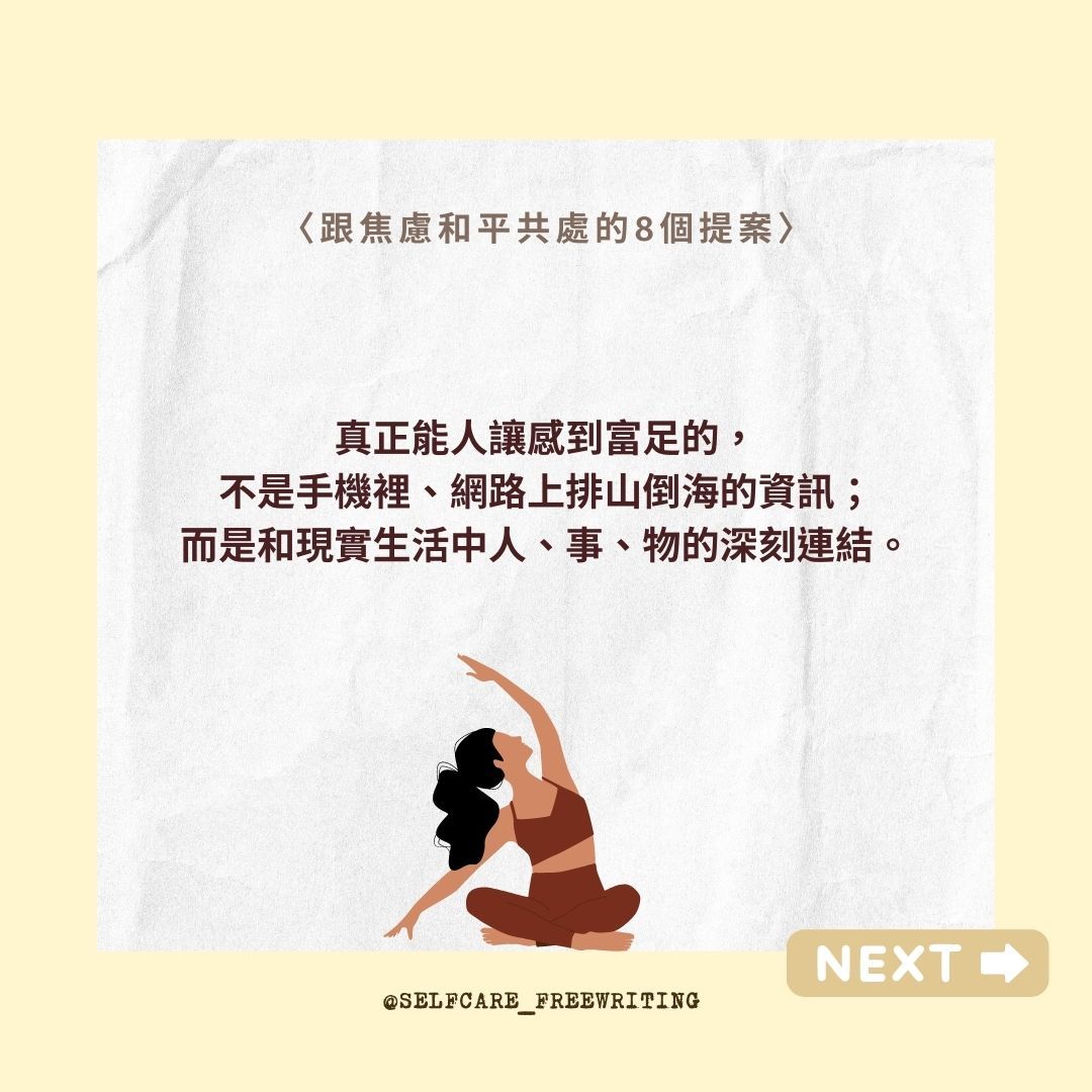 自我照顧方式 About Self-Care|與焦慮和平共處的8個提案⚡️ 你可以從內在找到力量! 你是一個容易感到焦慮的人嗎?有想過自己是因為什麼感到焦慮嗎?-真正能人讓感到富足的,不是手機裡、網路上排山倒海的資訊;而是和現實生活中人、事、物的深刻連結。