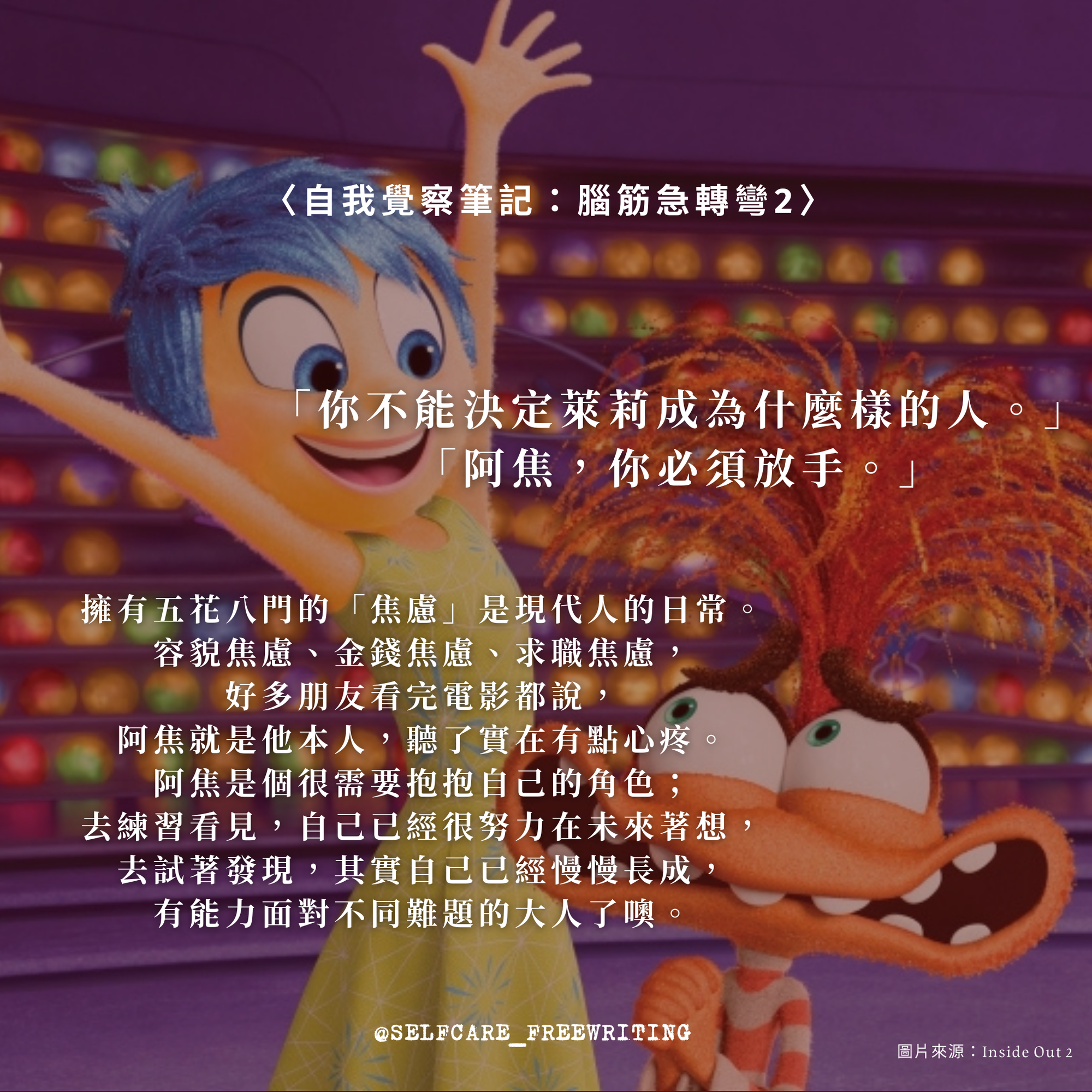 看完《腦筋急轉彎 2》的第一個念頭是:「啊跟作品、角色一起長大,真的就是這種感覺。好療癒🥹」