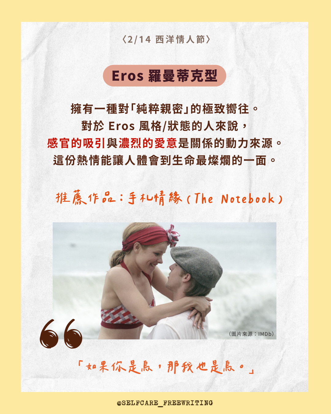 擁有一種對「純粹親密」的極致嚮往。對於 Eros 風格/狀態的人來說,感官的吸引與濃烈的愛意是關係的動力來源。這份熱情能讓人體會到生命最燦爛的一面。