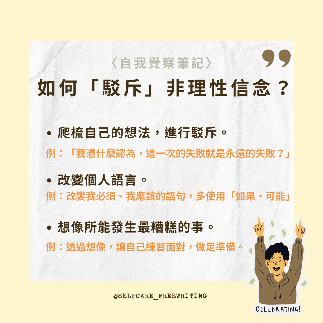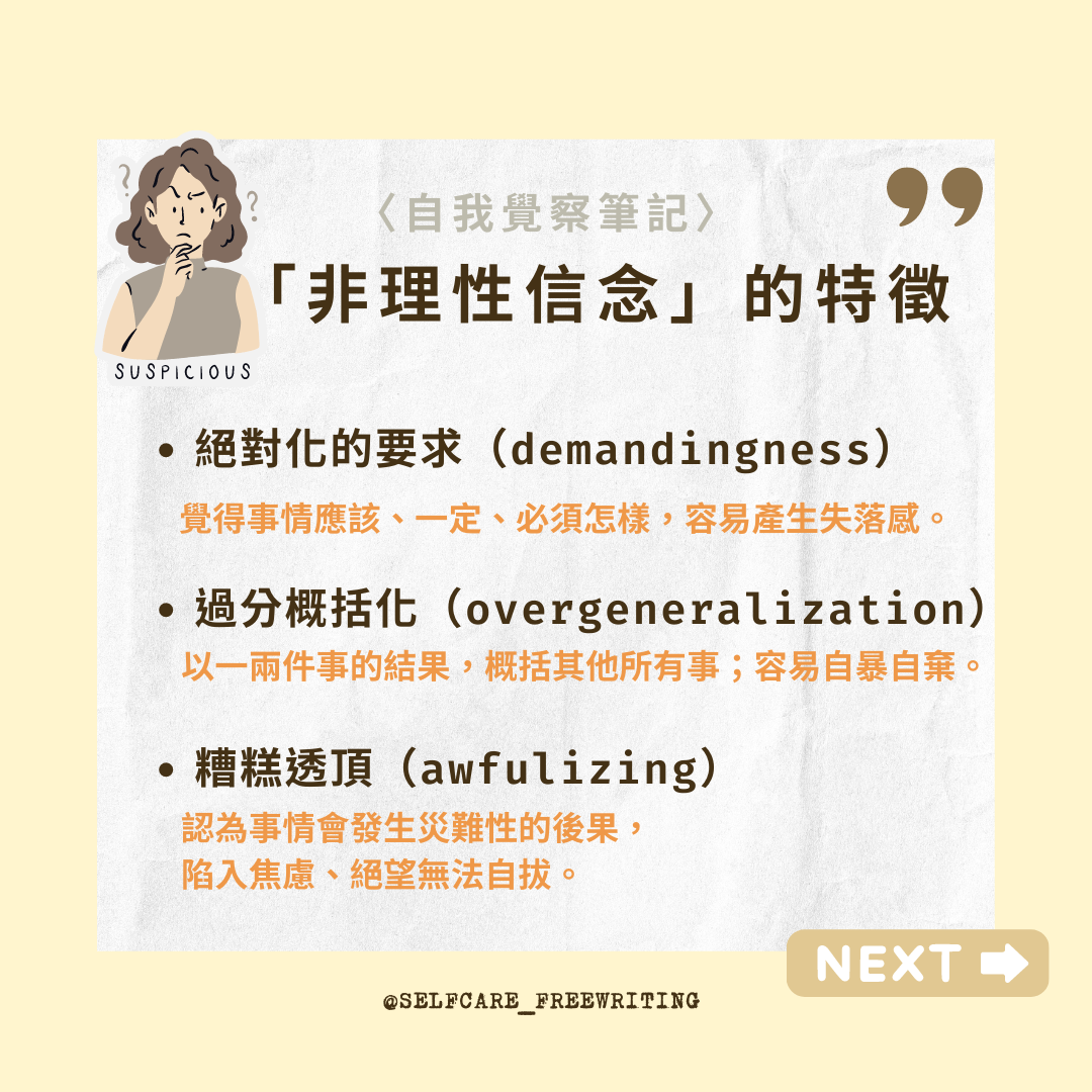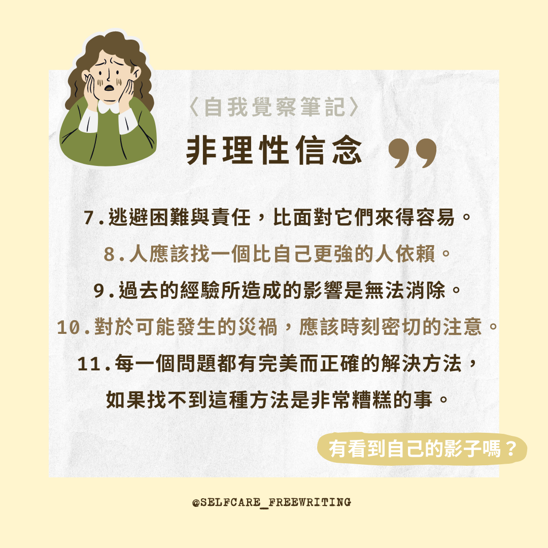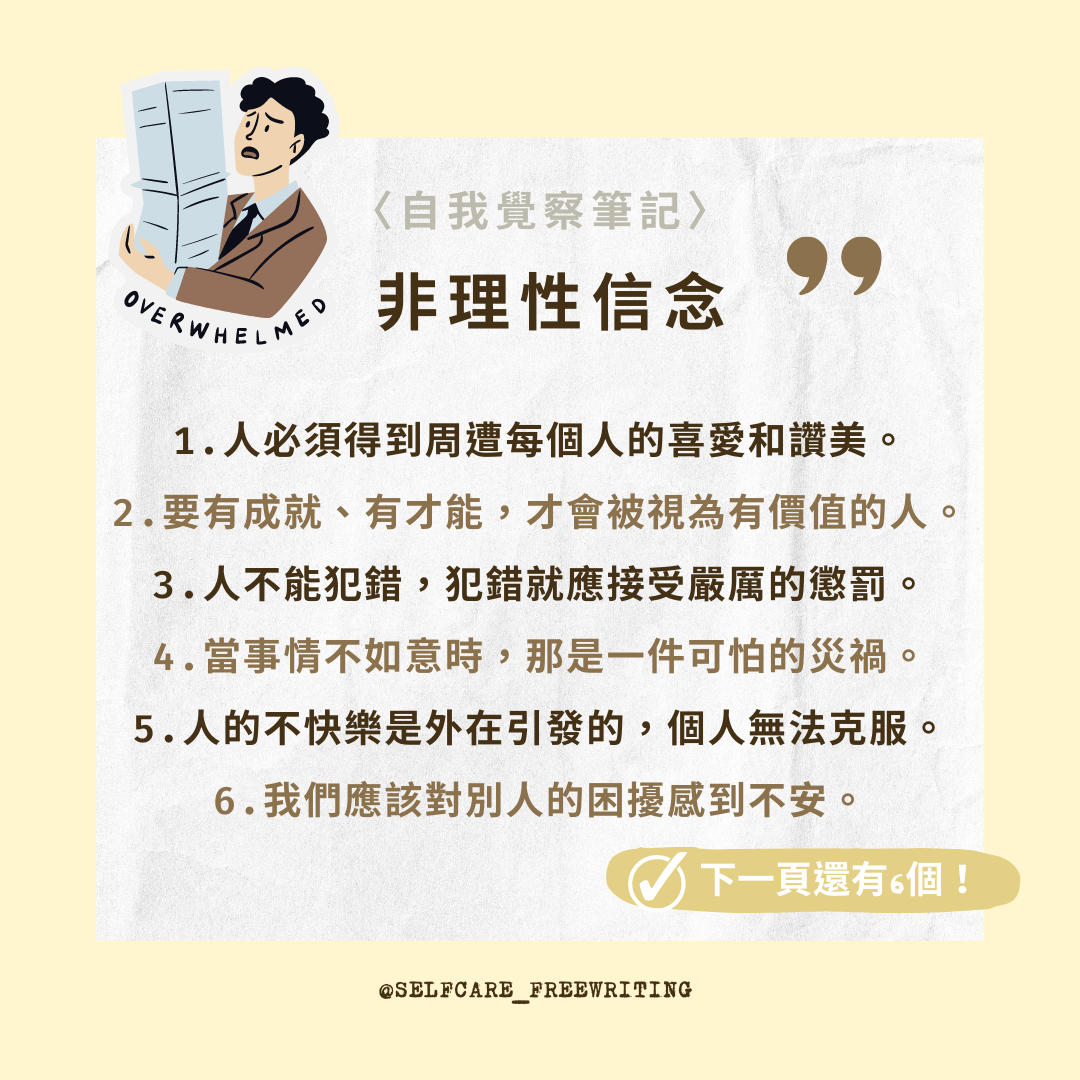 人不能完全理性。但沒關係,正是因為不理性讓我們能感受感性的溫度。一起來檢視自己有浮現過哪些非理性信念吧💭