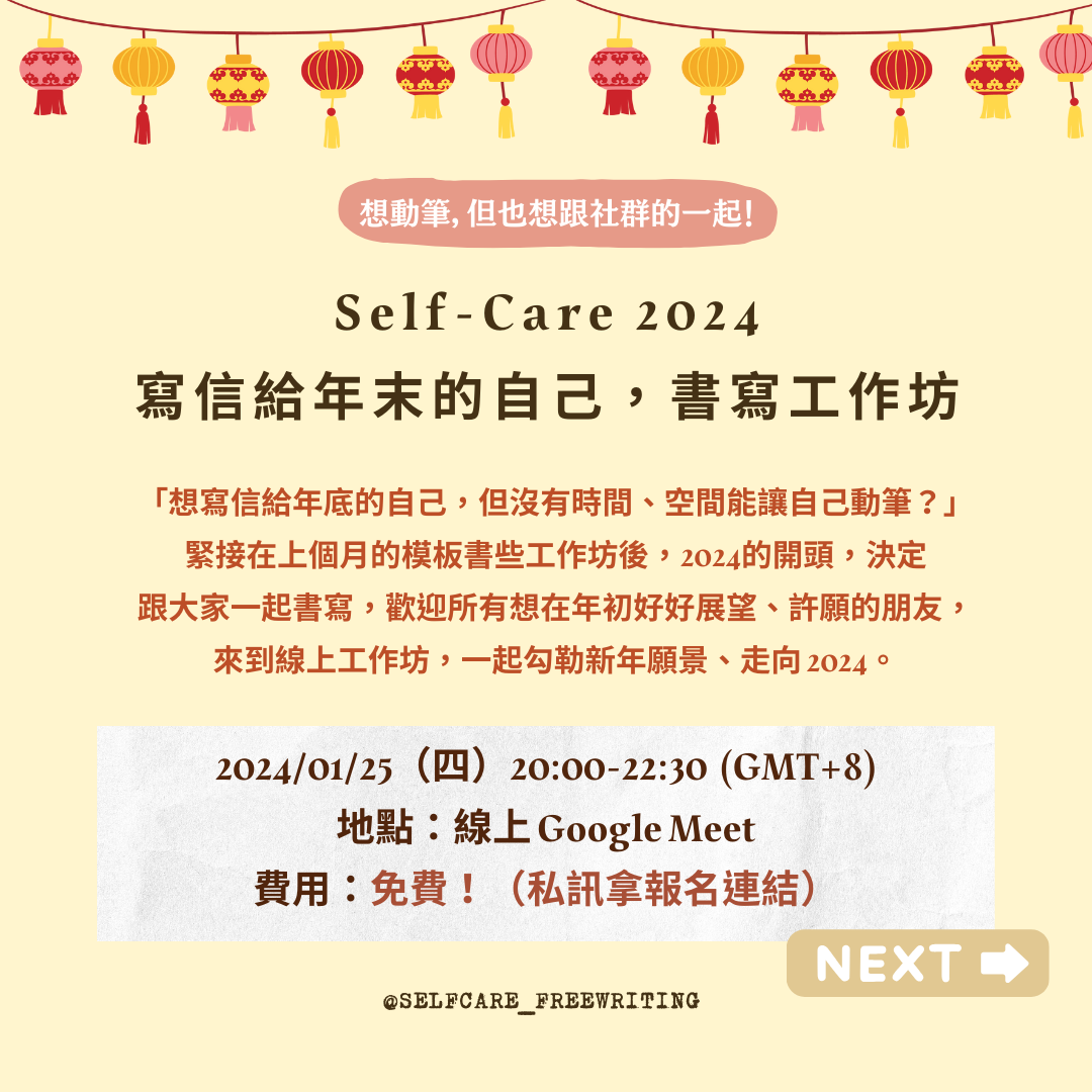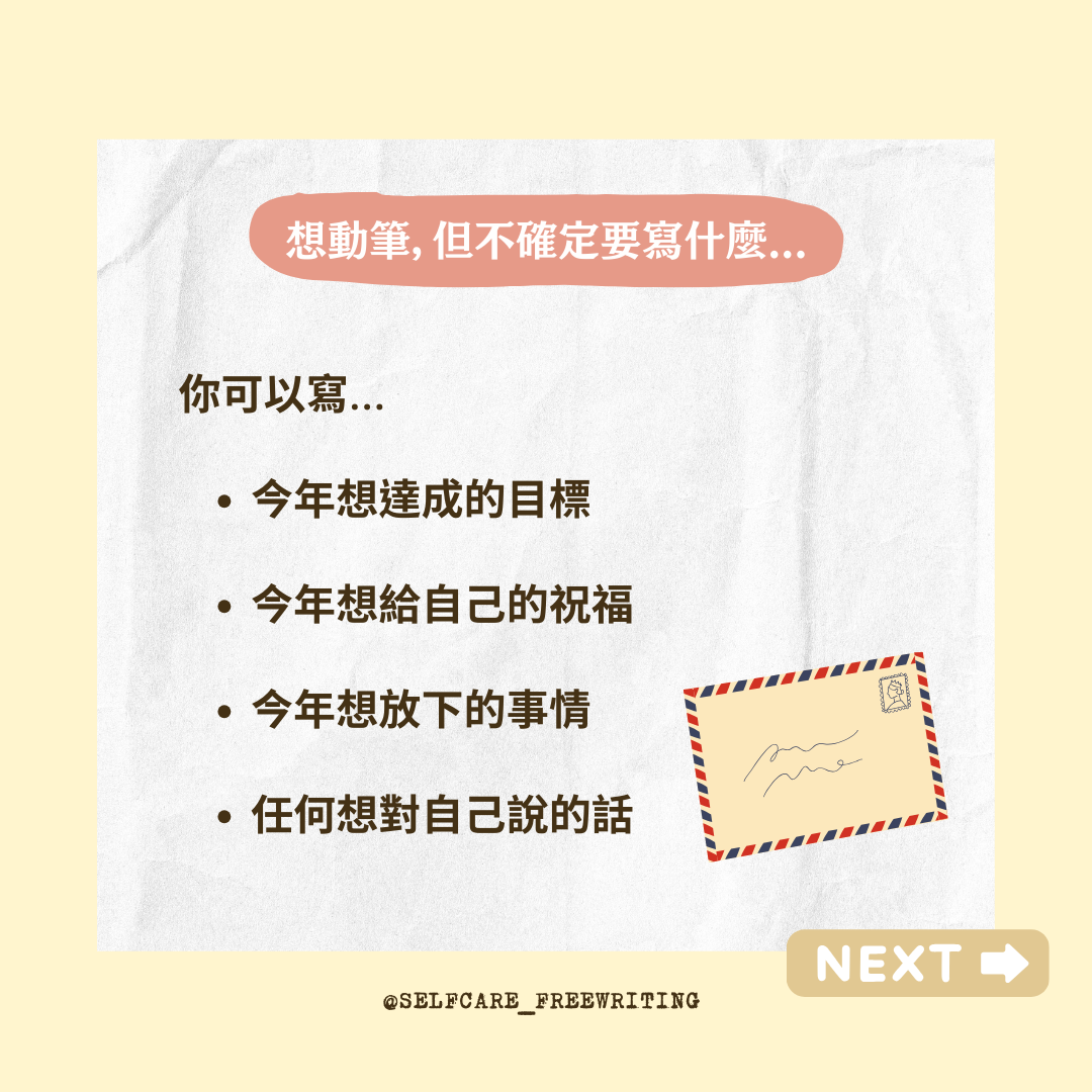 ✨若自己一個人沒動力寫,歡迎參加 01/25(四)的線上書寫工作坊!私訊即可領取表單!